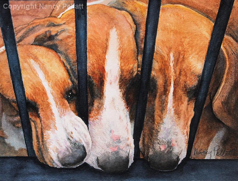 I have known and lived with many. They are great companions, good citizens and sometimes comic relief. Foxhounds hold a special place in my heart. Whether working a cold scent or in full cry the foxhound reveals its integrity and devotion to the hunt. At home in the kennel other aspects of the foxhound's personality and temperament are seen as the hounds live their daily lives in kennel society.